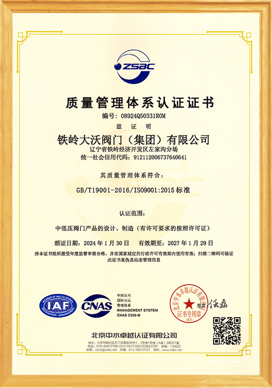 鐵嶺大沃閥門(集團)有限公司,是原鐵嶺閥門廠改制后,以原國有企業(yè)各領(lǐng)域的骨干精英為核心所組建的創(chuàng)新型企業(yè)。公司在傳承老“鐵閥”所積淀的“管理嚴(yán)格、質(zhì)量第一”精神的同時,將“以客戶為中心,市場為導(dǎo)向,科技創(chuàng)新為支撐”作為發(fā)展理念;將“修為礪器,誠信匠心”作為核心價值觀。在近十年的發(fā)展歷程中,鐵嶺大沃人通過不懈地探索和創(chuàng)新,逐步形成了獨特的經(jīng)營模式及核心競爭力。成為遼寧省企業(yè)廳命名的省級創(chuàng)新型企業(yè);成為通過ISO 9001質(zhì)量管理體系、ISO14001環(huán)境管理體系和ISO 18001職業(yè)健康安全管理體系認(rèn)證,以及特種設(shè)備制造許可證認(rèn)證......
